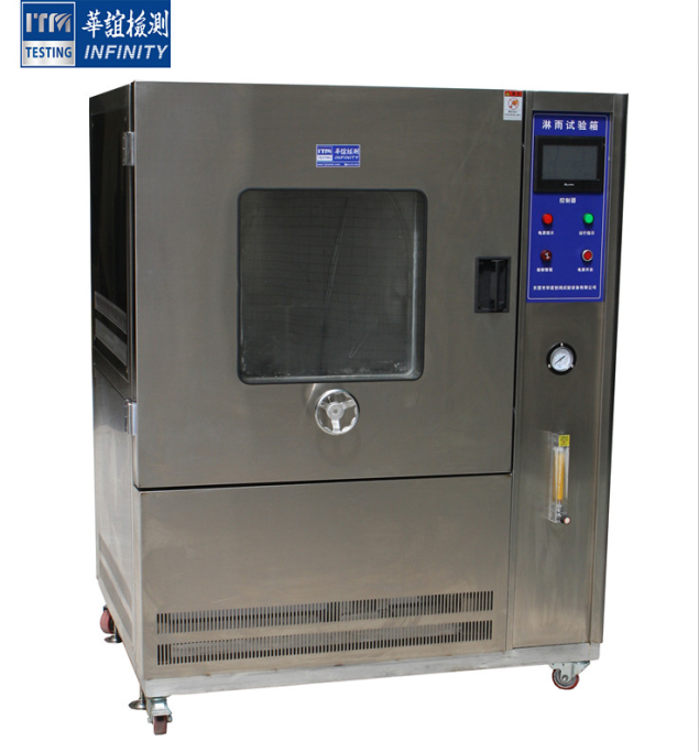本設備適用于所有電子產(chǎn)品、儀器儀表外殼和密封件在淋雨環(huán)境下能否保證產(chǎn)品和元件性能良好的試驗。箱體內(nèi)外均采用不銹鋼制作,配有觀察窗,箱體內(nèi)放置樣品用轉盤,采用變頻調(diào)速電機調(diào)速,擺管擺幅90°、180°、270°可調(diào)。