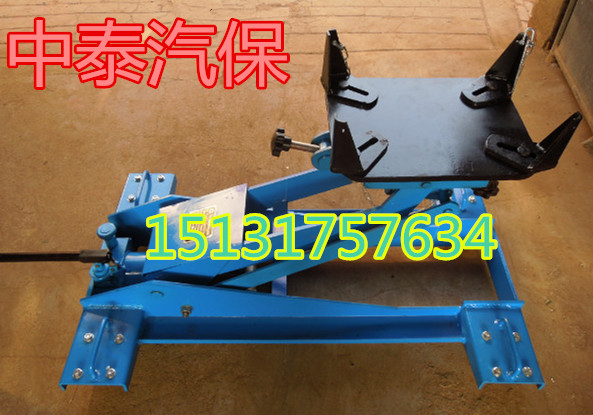 2、 將液壓運送舉升器推入汽車下面,并將液壓運送舉升器升到合適位置,拆下需維修的物件(如:變速箱、發動機、傳動軸、前后橋等)放于托架中心,然后用鋼鏈系牢物件,打開卸荷閥,將托架和物件放到底位。