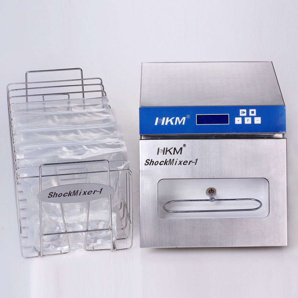 ShockMixer-1?高速振蕩樣品前處理器通過高頻率震動內裝樣品的均質袋,產生強烈沖擊波與高速攪動聯合作用,使樣品得到均質。在微生物檢測樣本制備中,樣品中表面與較深層的微生物會充分而迅速地驅趕到樣品懸液,形成菌濃度均勻的樣品稀釋液。經實踐顯示,對于大部分的食品樣品,ShockMixer減輕了對樣品的破壞,從而極大地減少了樣品碎片的產生。