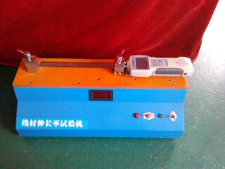線材伸長率試驗機適合銅絲、鋁絲、鋁鎂合金絲、鐵絲等金屬絲之伸長率(延伸率)特性試驗及拉力試驗。電路采用運算集成電路及過程控制,無需人工計算,自動顯示伸長率的百分比;伸長長度采用激光感測技術感測精度高。可加裝拉力采用推拉力計顯示(可選配數字式或指針式),測試時拉力與伸長率同步顯示,提高測試效率。