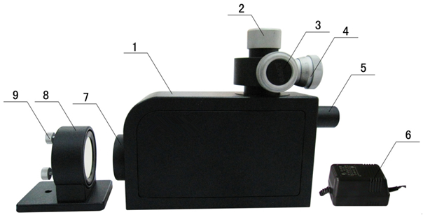 6、變壓器 7、望遠物鏡 8、可調式反射鏡 9、調節螺釘