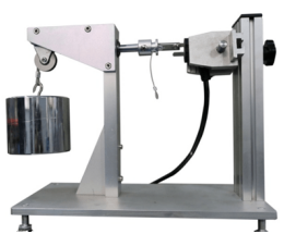 通過定滑輪用砝碼掛繩實現拉力,用一定扭力臂的轉輪和砝碼實現扭矩