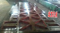 - 劃線平臺制成筋板式和箱體式,工作面有長方形,材料HT200,工作面采用刮研工藝,工作面上可加工V型、T型、U型槽和圓孔、長孔等。鑄鐵平板是用于工件檢測或劃線的平面基準器具。平板安裝應(yīng)調(diào)至水平、負荷均分布于各支點上,環(huán)境溫度使用時應(yīng)避免振劃線平板(平臺)的用途: 是檢查機器零件平面度,直線度等形位公差的測量基準,也可用于零件劃線研磨加工,安裝設(shè)備等用途。是檢驗機械零件平面、平行度、直線度等形位公差的測量基準,也可用于一般零件及精密零件的劃線、鉚焊研磨工藝加工及測量等。 劃線平臺的生產(chǎn)工藝流程基本是: 一、鑄鐵平板毛坯:按技術(shù)要求制圖紙、按圖紙制作模型、配料、造型、烘干、澆鑄、落沙、清理、檢驗毛坯的各部位;熱處理毛坯,時效處理,其目的是降低鑄件內(nèi)部的應(yīng)力,防止機械加工后的變形。 二、鑄鐵平板機械加工:外觀檢驗并劃線、加工、檢驗; 三、鑄鐵平板工件調(diào)平、人工刮研、檢驗科檢驗; 四、鑄鐵平板的外觀處理、噴漆、包裝、入庫。 鑄鐵平板的精度也可以說是鑄鐵平板的平面度:鑄鐵平板一般精度可以分為0級、1級、2級、3級。鑄鐵平板的精度標準在《中華人民共和國機械行業(yè)標準》JB/T 7974—2000里可以查到。選用精度標準時一般根據(jù)使用情況酌情而定。3級精度以上的鑄鐵平板用做檢驗、劃線、裝配等使用,4級精度以下的鑄鐵平板一般用做鉚焊等使用。