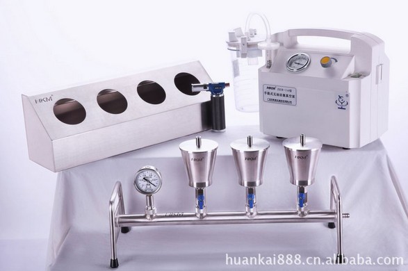 GB19298包裝飲用水銅綠檢驗采用廣東環凱MFS系列不銹鋼薄膜過濾器 , 整合了真空泵系統,為多個樣品同時過濾而設計制造,可分別選配兩孔、三孔、六孔等規格支架、250ml或者500ml濾杯(需&PHi;47mm微孔濾膜)配合使用,目前,國內實驗室在對溶液進行過濾時,一般采用玻璃材質砂芯過濾裝置,這種方法每次只能過濾一個樣品,過濾速度慢,效率低,人工勞動強度大。對于需要同時過濾多個樣品的操作者,選擇使用多聯過濾器更為方便。供制藥、疾控、食品、化工等領域進行細菌集菌和微生物限度檢查使用。