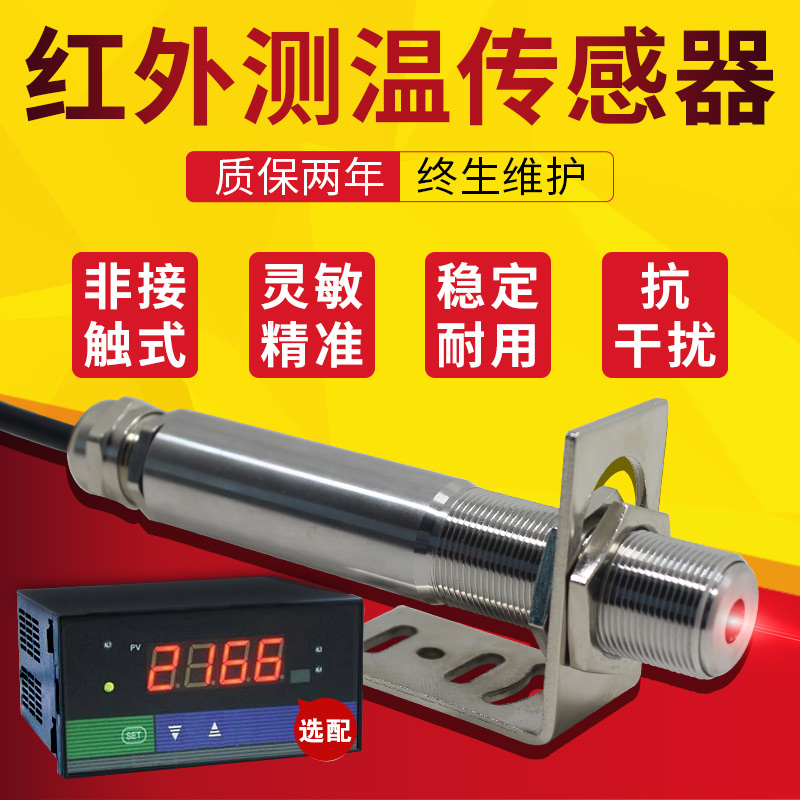 該溫度傳感器為一體化集成式紅外溫度傳感器,傳感器、光學系統與電子線路共同集成在不銹鋼殼體內;易于安裝,金屬殼體上的標準螺紋可與安裝部位快速連接;同時還有選件(安裝支架)以滿足各種工況場合要求。