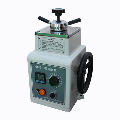 MSQ-30為機械式鑲嵌機,旋轉機體外手輪,通過一對傘齒輪帶動機體內絲桿使壓制試樣的下模在鋼模套內上下移動,熱因性塑料連同鑲嵌的試樣在加熱的條件下成形。