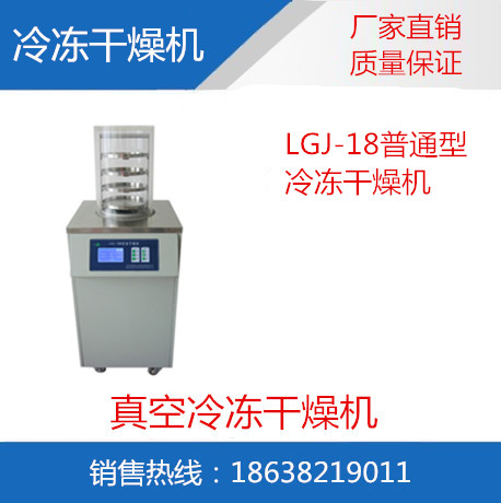 真空冷凍干燥機廣泛用在醫學、制藥、生物研究、化工和食品等領域。經冷凍干燥處理的物品易于長期保存,加水后能恢復到凍干前狀態并保持原有生化特性。LGJ-18冷凍干燥機,適用于實驗室使用或少量生產,可滿足大多數實驗室常規凍干的要求。