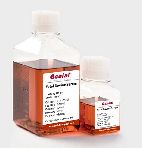 • 美國(guó)Genial Biologicals, Inc.(http://www.genialbiologicals.com)成立于2016年,總部位于美國(guó)科羅拉多州,是一家為科研、診斷、生物醫(yī)藥等機(jī)構(gòu)提供細(xì)胞培養(yǎng)產(chǎn)品的頂級(jí)制造商,產(chǎn)品及服務(wù)主要面向生命科學(xué)研究領(lǐng)域,產(chǎn)品覆蓋三大方面:胎牛血清、細(xì)胞培養(yǎng)基、細(xì)胞培養(yǎng)相關(guān)試劑等;北京華創(chuàng)恒達(dá)科技有限公司是美國(guó)Genial Biologicals, Inc.的中國(guó)獨(dú)家代理商,歡迎廣大新老客戶來(lái)電咨詢。 Genial血清來(lái)自南美/美國(guó)/澳洲純正血源,涵蓋牛血清、馬血清、豬血清、小鼠血清、大鼠血清等。 血清質(zhì)量穩(wěn)定,低內(nèi)毒素,無(wú)細(xì)菌、支原體、噬菌體、病毒等污染, 無(wú)外源添加因子,不含激素等。 經(jīng)過(guò)近500種細(xì)胞系、400多種原代細(xì)胞,十萬(wàn)次以上細(xì)胞培養(yǎng)驗(yàn)證,只為您放心使用。 Genial優(yōu)級(jí)純正的南美胎牛血清,促進(jìn)細(xì)胞增殖, 可用于培養(yǎng)腫瘤細(xì)胞、原代細(xì)胞以及部分干細(xì)胞。 歷經(jīng)多年發(fā)展,Genial Biologicals, Inc.一直在持續(xù)穩(wěn)定的為廣大藥物研發(fā)、疫苗研發(fā)企業(yè)及醫(yī)院、高校等科研機(jī)構(gòu)工作者供應(yīng)高品質(zhì)血清,歡迎咨詢選購(gòu)。 貨號(hào):G15-70500 品名:Fetal Bovine Serum, Uruguay origin 規(guī)格:500ml 備注:現(xiàn)貨 Genial胎牛血清(烏拉圭血源):挑選了最好的批次(內(nèi)毒素,血紅蛋白指標(biāo)優(yōu)異),經(jīng)過(guò)了“在SP2/O-Ag14,HELA,L929,MRC-5細(xì)胞系培養(yǎng)成功”的測(cè)試。