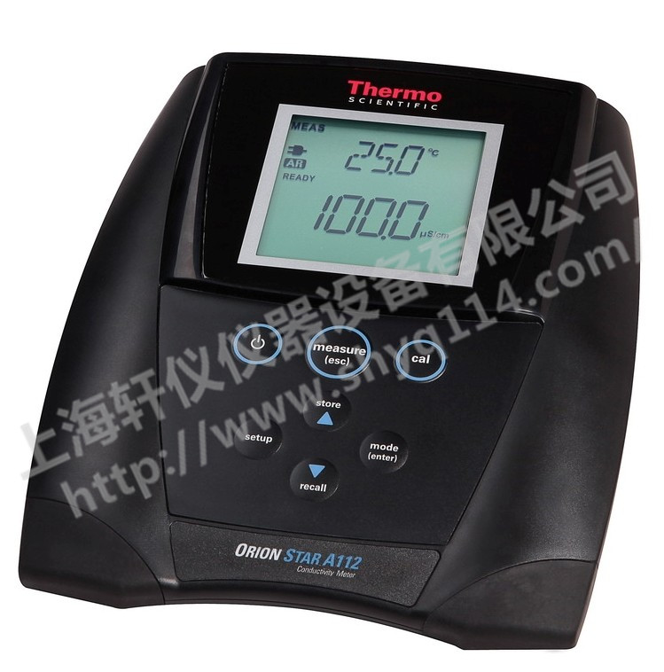 上海軒儀儀器設備有限公司代理的美國ThermoFisher Orion奧立龍Star A臺式基礎型電導率測量儀主機為A112,采用大屏幕LCD,可顯示電導率/TDS和溫度,以及電量和校準信息,屏幕下方的提示信息可幫助您進行測量、校準、菜單設置。110C-01A臺式電導率儀電導池常數可以選擇,參比溫度可選擇20或25℃。A112臺式電導率測試儀可以使用AA電池或者電源適配器,操作簡便,測量準確,防護等級達IP54,是您實驗室測量電導率的好幫手!