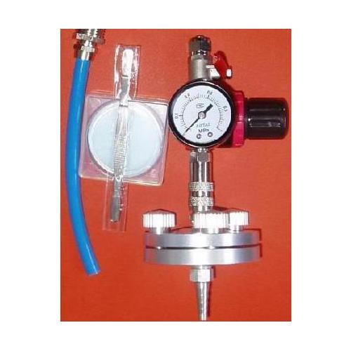 6、確定測試儀內已經沒有空氣了,輕輕旋緊塑料螺絲。完全打開閥門,將減壓閥壓力調節到0.2MPa(207KPa),保持住該壓力,關上閥門。整個測試期間,壓力必須保持不變。