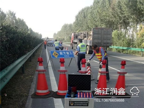交通事故現(xiàn)場預(yù)警設(shè)備由無線預(yù)警器、便攜報警器組成。現(xiàn)場使用時無線預(yù)警器安插在交通事故現(xiàn)場防護錐筒上,高亮警示燈面向來車方向,警示車輛提前減速避讓,當(dāng)有車輛闖入警戒區(qū),撞擊安裝在錐桶上的防闖入設(shè)備時,現(xiàn)場所有報警設(shè)備立即發(fā)出聲光報警,及時