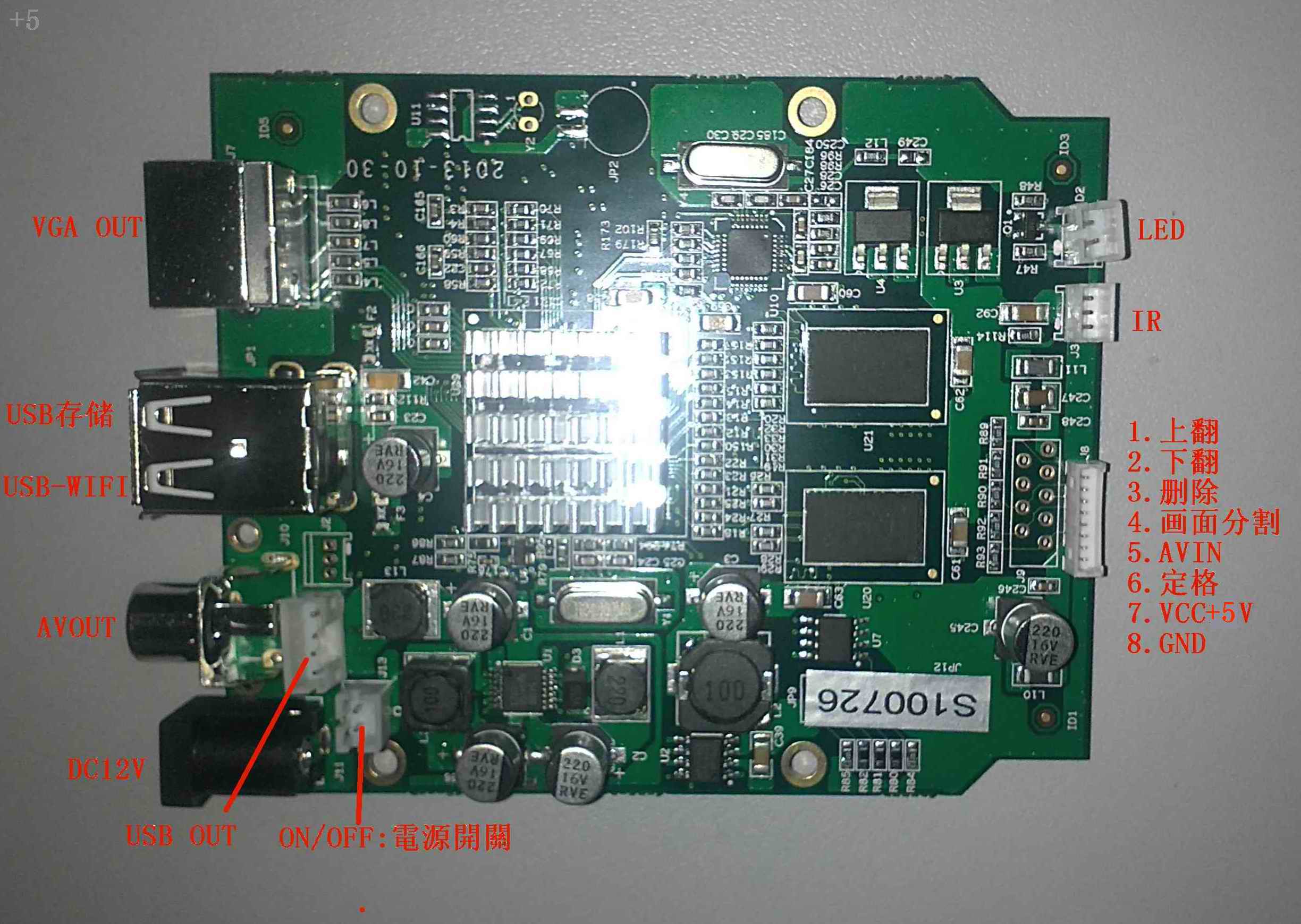9. 按鍵/AVIN/DCOUT:接按健板,視頻輸入端,5V電源輸出端。