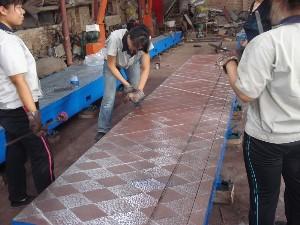 • 高精密鋁合金型材檢驗(yàn)平臺(tái)鋁合金型檢驗(yàn)平臺(tái)鑄鐵檢驗(yàn)平臺(tái)價(jià)格 鋁型材檢測(cè)平臺(tái)產(chǎn)品介紹 鋁型材檢驗(yàn)平臺(tái)與一般的鑄鐵平臺(tái)有相似的地方,但是也有不同的地方,不同的在于平臺(tái)的結(jié)構(gòu),一般的平臺(tái)如果承重量不是很大的話(huà),面板和圍子可以做的稍微的單薄一點(diǎn),這樣可以節(jié)省成本,但是鋁型材檢驗(yàn)平臺(tái)卻不能這樣衡量,平臺(tái)的承重雖然不是很大,但是平臺(tái)由于其特殊的形狀,所以高度應(yīng)該保持在300或者300以上,面板的厚度保持在50為宜,這樣平臺(tái)就能比較好的保持精度,方便客戶(hù)的使用,所以,客戶(hù)在選擇平臺(tái)時(shí)一定不要聽(tīng)人的一面之詞,不要只為了節(jié)省點(diǎn)資金而耽誤了生產(chǎn)。 鋁型材檢驗(yàn)平臺(tái)是檢驗(yàn)鋁型材平行度的平臺(tái),是鋁型材生產(chǎn)廠家必不可少的生產(chǎn)工具。 我公司生產(chǎn)的鋁型材專(zhuān)用檢驗(yàn)平臺(tái)適用于各規(guī)格尺寸的鋁型材檢測(cè),精度高、內(nèi)應(yīng)力消除好、長(zhǎng)期使用不變形。目前我公司已為全國(guó)眾多生產(chǎn)鋁型材的廠家提供了多臺(tái)鋁型材專(zhuān)用檢驗(yàn)平臺(tái)。鋁型材廣泛應(yīng)用于航空、航天、建筑等行業(yè),,鋁型材本身體積較長(zhǎng),因?yàn)殇X型材的特點(diǎn)所以檢驗(yàn)平臺(tái)有以下特點(diǎn): 1,上面為平面,人工鏟刮上表面的平面度。 2,規(guī)格:500*6000,600*6000(特殊規(guī)格根據(jù)需方圖紙制作。) 3,精度:按國(guó)家標(biāo)準(zhǔn)計(jì)量檢定規(guī)程執(zhí)行,分別為0、1、2、3四個(gè)等級(jí)。 4,材質(zhì):高強(qiáng)度鑄鐵HT200-300工作面硬度為HB170-240,經(jīng)過(guò)兩次人工處理(人工退火600度-700度和自然時(shí)效2-3年)使用該產(chǎn)品的精度穩(wěn)定,耐磨性能好。 鋁型材鑄鐵平板有時(shí)和流水線(xiàn)配套使用,不可缺少的會(huì)遭受沖擊力,配套使用的架子一定要穩(wěn)固,而且平臺(tái)的面厚也要加強(qiáng)。