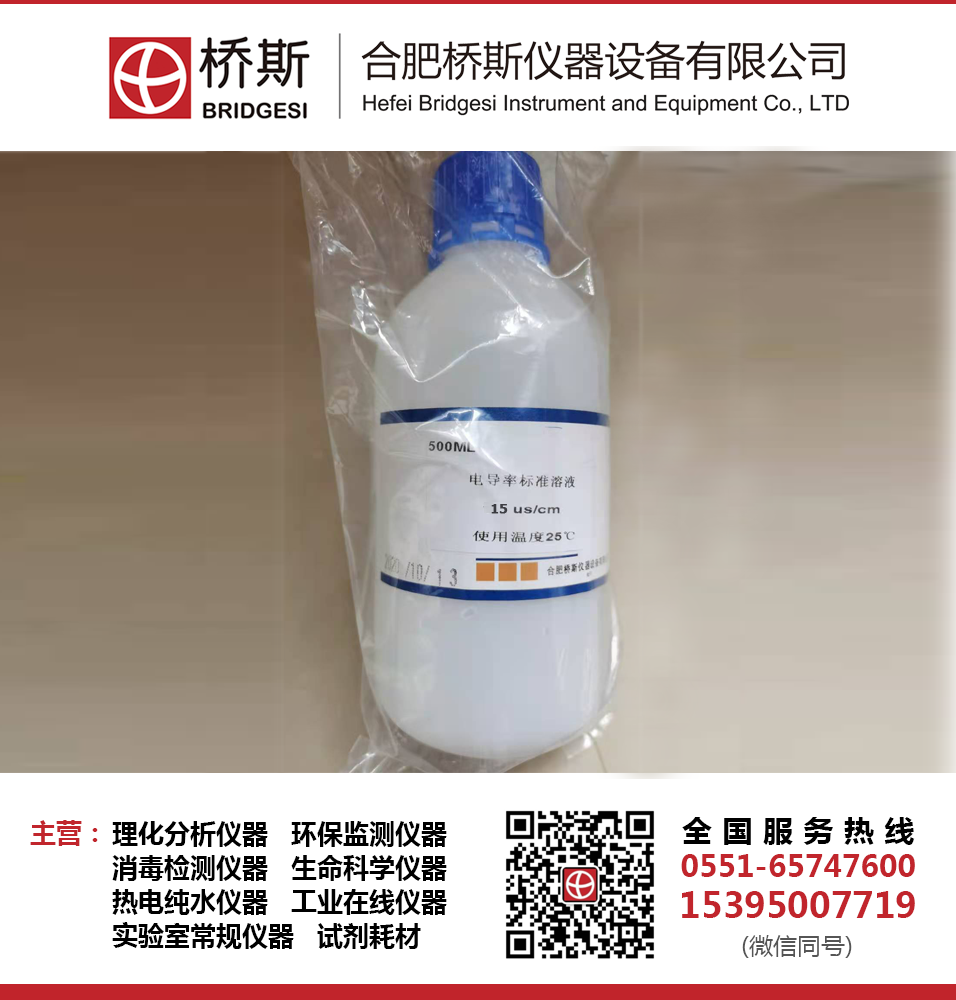 可定制各種非標濃度電導率溶液,咨詢合肥橋斯儀器15395007719(微信同號)