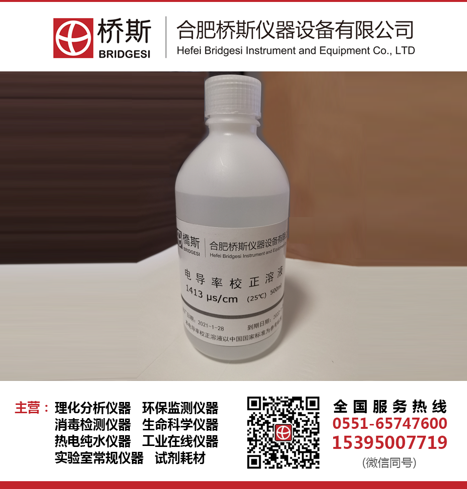 可定制各種非標濃度電導率溶液,咨詢合肥橋斯儀器15395007719(微信同號)