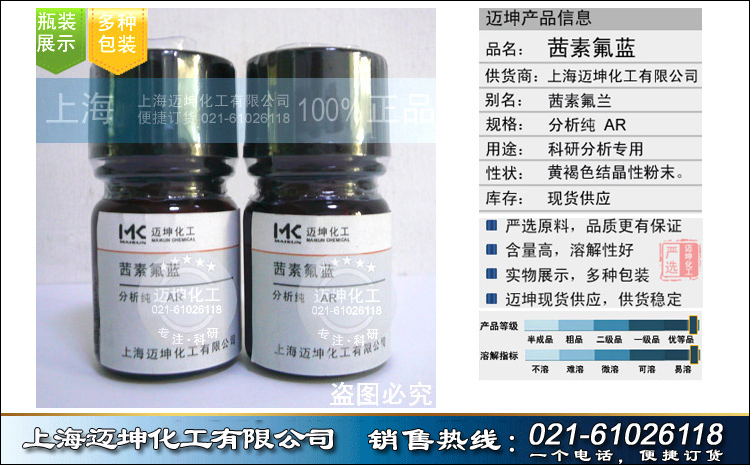2)茜素氟藍作為絡合指示劑,用于化學分析;