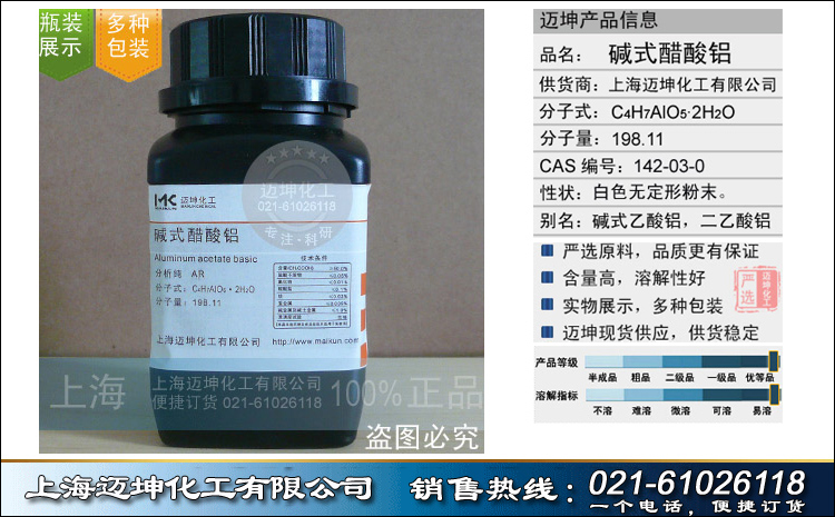 別 名:二醋酸鋁,鹽基醋酸鋁,氫氧化二醋酸鋁,醋酸鋁,堿式,二乙酸鋁,鹽基乙酸鋁,氫氧化二乙酸鋁,乙酸鋁,堿式,堿式乙酸鋁。