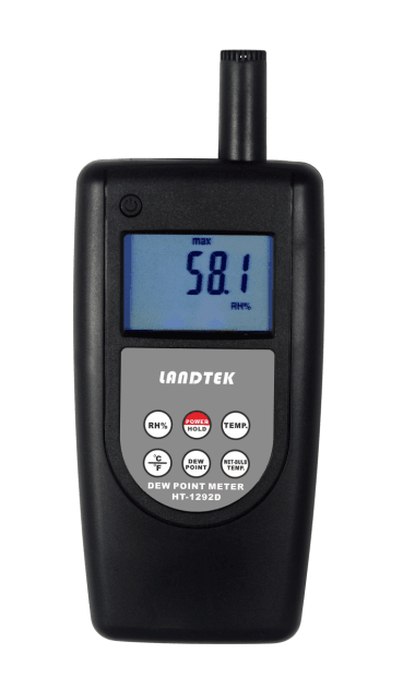 可測量濕度、溫度、濕球溫度、露點溫度。
