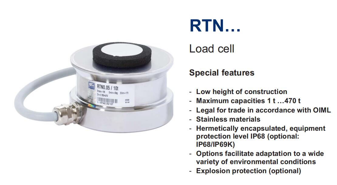 - RTN0.05-22T扭環式大型料罐集裝箱稱重傳感器?最大額定量程可達 470噸,結構緊湊,結實耐用。防護等級高達IP 68/IP 69K,非常適合各種大型料罐、集裝箱稱重及汽車衡等。平臺秤、筒槽計、配料秤 皮帶秤、定量系統,非常適合各種大型料罐、集裝箱稱重及汽車衡等。
