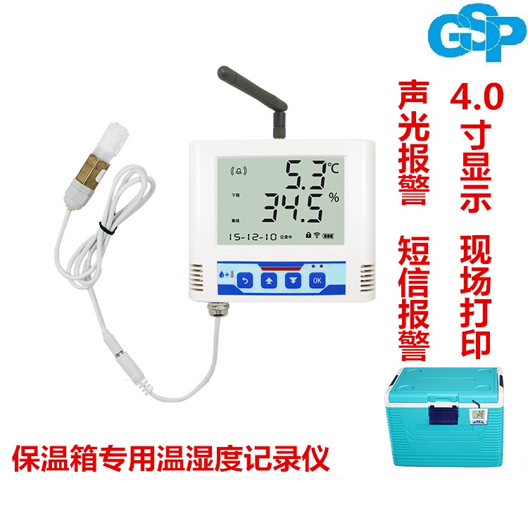 壁掛式保溫箱記錄儀帶有本地溫度顯示和存儲、GPRS方式數據上傳、溫度臨界或超限時聲光報警和短信報警等功能。我公司免費提供24小時運行的云服務器(www.0531yun.cn)。