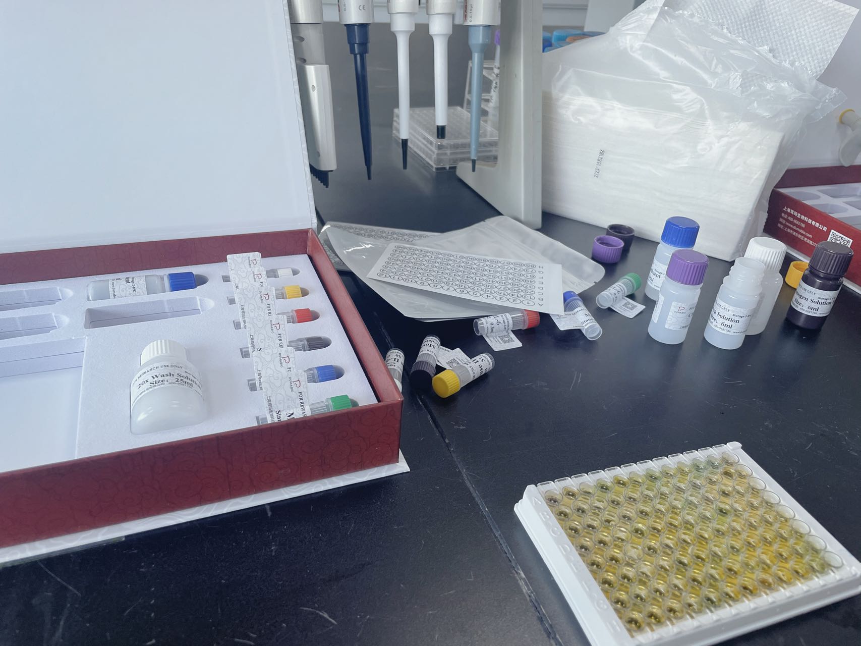 6.依序每孔加底物溶液90μl,37℃避光顯色(30分鐘內(nèi),此時(shí)肉眼可見標(biāo)準(zhǔn)品的前3-4孔有明顯的梯度藍(lán)色,后3-4孔梯度不明顯,即可終止)。