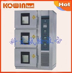復式恒溫恒濕試驗箱,是金屬、汽車、家電、科研等領域必備的檢測設備,用于測試和確定電工、電子及其他產品及材料進行高溫、低溫溫度環境變化后的參數及性能。適用于工廠、學校、研究所做品質檢測、研發使用。