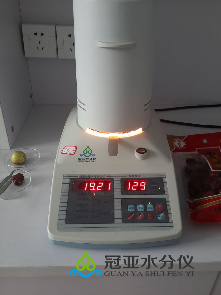 冠亞集團研發生產的SFY-60型www.gysfy.com/product/35.html"> style="color:#B22222">紅棗水分儀.新疆紅棗快速水分測定儀是采用國標干燥失重法原理研制的一款高性價比,實用、快速、方便、準確的測量儀器,測試速度創行業之最,認準冠亞SFY系列快速水分儀.谷物水分測定儀,糧食水分儀品質保證!詳細技術指標請上公司網站查看www.gysfy.com>www.gysfy.com">www.gysfy.com 深圳冠亞SFY-60型www.gysfy.com/product/35.html"> style="color:#B22222">紅棗水分儀.新疆紅棗快速水分測定儀可廣泛應用于一切需要快速精密測定水分含量的行業,目前《冠亞牌》快速水分測定儀已被企業、大專院校、科研機構、環保檢測、農業系統、糧食收購等行業廣泛應用于各種生產與實驗過程中,樣品狀態如:碎片、粉末、顆粒、膏狀、液體、纖維類都可以測試。SFY-60型紅棗水分儀.新疆紅棗快速水分測定儀基本參數: 1、稱重范圍:0-60g★★可調試稱重范圍最大500g(特殊訂做)2、水分測定范圍:0.01-100% 3、稱重最小讀數:0.01g★★JQR稱重系統傳感器4、樣品質量:0.5-60g 5、加熱溫度范圍:起始-180℃★★加熱方式:可變混合式加熱★★微調自動補償溫度最高15℃6、水分含量可讀性:0.01% 7、顯示參數:7種★★紅色數碼管獨立顯示模式8、外型尺寸:380×205×325(mm) 9、電源:220V±10% 10、頻率:50Hz±1Hz 11、凈重:3.7Kg冠亞牌SFY系列紅棗水分儀.新疆紅棗快速水分測定儀央視新聞2014年兩次報道www.gysfy.com/news/cctv-news-20141012.html
