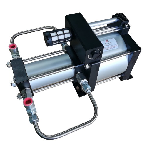 - 嘉力5倍空氣增壓泵,屬于單頭雙作用增壓泵,流量在原來的基礎(chǔ)上實現(xiàn)翻倍。空氣增壓比為5:1,最大輸出壓力可達(dá)4MPa,最大輸出流量為820L/min。 技術(shù)特點(diǎn):利用部分被增壓的空氣作為動力,其余的氣體被增壓后輸出,無需其他氣源或電源作為動力。 嘉力空氣增壓泵由大面積的氣動活塞,小面積的氣體柱塞和換向控制閥三個主要部件組成。氣動活塞和氣體柱塞通過傳動桿連在一起,由換向閥控制自動做往復(fù)運(yùn)動。通過大面積的活塞和小面積的柱塞,將作用在活塞上的驅(qū)動氣體的壓強(qiáng)傳遞給柱塞,從而提高氣體的出口壓力。 嘉力獨(dú)特的密封技術(shù)使得增壓泵在運(yùn)行時,無需采取任何的潤滑技術(shù)。 活塞和柱塞的面積比就是嘉力空氣增壓泵的增壓比,該增壓比和驅(qū)動氣的壓力將決定泵的最高出口壓力。當(dāng)泵的出口壓力達(dá)到最大時,它將自動停止,并且保持該壓力,而不會消耗額外的氣源,也不會產(chǎn)生熱河熱量。當(dāng)出口處的壓力低下來時,增壓泵又將自動開始工作,直至達(dá)到最高壓力。嘉力增壓泵具有自動保壓、自動補(bǔ)壓的功能。