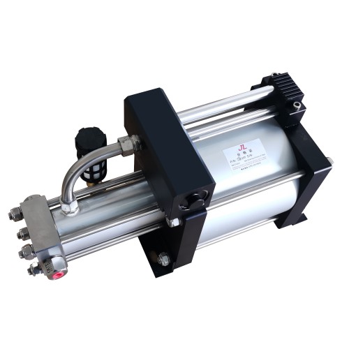 - JG系列氣體增壓泵是通用型氣氣增壓泵,屬于單頭型增壓泵,主要用于只要求輸出氣壓高,而不要求流量的各種場合。最高輸出壓力可達1000公斤,可對各類氣體進行增壓,如常用的氮氣,空氣,二氧化碳,氧氣,氫氣及各種惰性或稀有氣體。采用普通壓縮空氣進行驅動,驅動部分為免潤滑,并且高壓缸頭均自帶有冷卻系統,以防高壓帶來的高溫影響。 產品結構采用鋁合金和不銹鋼制造,可以使用17-4PH,15-5PH,440C等材料來滿足特殊介質,全部密封件均為進口產品。