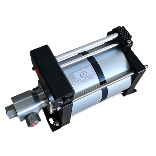 - 嘉力超高壓氣驅液壓泵,液體輸出壓力可達500MPa,工作介質可為水、油及大部分化學腐蝕性液體,而且可靠性高,壽命長和免維護。常應用于靜壓測試上,如膠管、管、閥、接頭和其他液壓容器及產品的壓力測試,是一種非常經濟有效的選擇。用來替代手動泵具有省時、省力、高效的優點。 應用在產業機械上,嘉力泵輸出的高壓力可用在夾緊、保持、成形、剪切、沖壓等機器上。例如:用在需長時間保壓、且壓力高、而行程短的壓力機上。采用高低泵組合,可實現低成本、高壓力、高速度。 嘉力泵體積小,可做動力源直接安裝在單臺設備上,不需中央動力源,減少配管和沿程能量損失。操作安全,采用氣體驅動,無電弧和火花,可在危險場所使用。維護簡單,與其他的氣驅泵比較,嘉力泵可完成同樣的動作,但其零件和密封件少,維護更簡單。 嘉力泵是一種柱塞式容積泵,將氣體壓力轉換成液體壓力,即利用大面積活塞端的低氣壓產生小面積活塞端的高液壓。工作時,隨著輸出壓力接近設定壓力值,泵的往復速度減慢直至停止。此時,活塞端的氣壓力與液壓力平衡,活塞基本保持靜止,此時能量消耗最低,流體溫度不再增加,零件停止運動。相反,電動泵必須連續運轉才能保持某一壓力輸出,且另需旁路元件溢流,結果導致能量損失,熱量增加,另需旁路元件及較大的油箱。