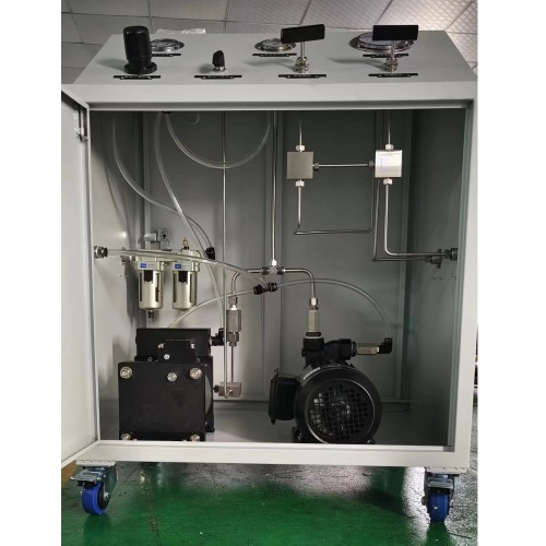 - 設備低壓采用電動泵輸出水壓;高壓以氣動液體增壓泵作為壓力源,驅動氣源壓力與輸出液體壓力成正比。通過對驅動氣源壓力的調整,可以對輸出壓力進行無級調節。當氣壓力與輸出力平衡時,氣動增壓泵自動停止動作,輸出壓力也穩定在設定的壓力上。如果有泄露導致系統壓力下降,氣動增壓泵自動啟動工作,進行壓力補償。通過控制氣源的進氣量,可以控制泵的動作頻率,從而控制系統的輸出流量。整套系統具有體積小、重量輕、操作簡單、安全可靠、適用范圍廣、輸出壓力可調等優點。
