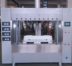操作過程:先有人工將大塑件放入機器工作臺上的下冷模內,并固定好,同時把兩種上塑件(小掛鉤)分別整齊排入機器工作臺上的兩個上料槽內,可批量排入;然后啟動設備,設備會自動完成所有點的焊接。最后由人工將焊好的工件在機器工作臺上取出,再進行下一個循環。
