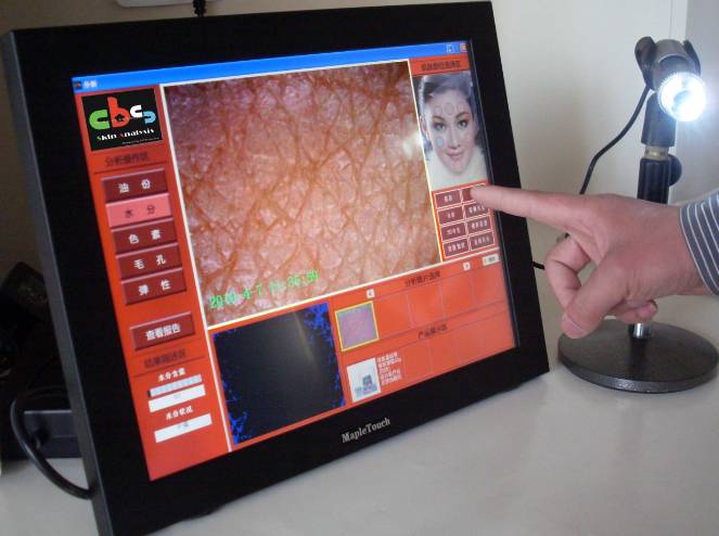 1、儀器為臺灣原產(非臺資企業在大陸設廠生產):目前大陸地區最高清的皮膚檢測儀,支持1280*1024分辨率,即拍攝一張圖片后,全屏放大都沒有任何的馬賽克,非常高清;色彩還原度高(即能夠真實再現被檢測對象本來的顏色,不失真,不偏灰色或藍色)。而普通國產儀器,分辨率只支持640*480,即拍攝的畫面只能達到QQ視頻畫框的大小,不清晰,將畫面稍稍放大則有馬賽克,顏色會有偏差較大。