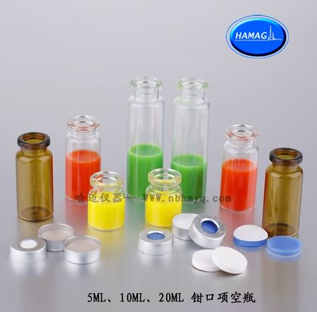 20mL 鉗口透明平底頂空瓶_自動進(jìn)樣瓶_色譜儀樣品瓶寧波哈邁