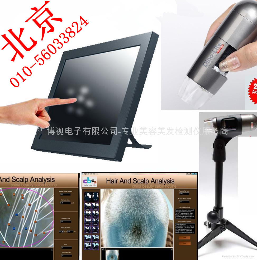 2、 我們采用的是臺灣原裝的最新的硬件, 含偏光鏡頭可以看到頭皮真皮層,倍率十分精準,硬件的倍率為10X到200X可以直接調節,不需要更換鏡頭,硬件十分便攜。