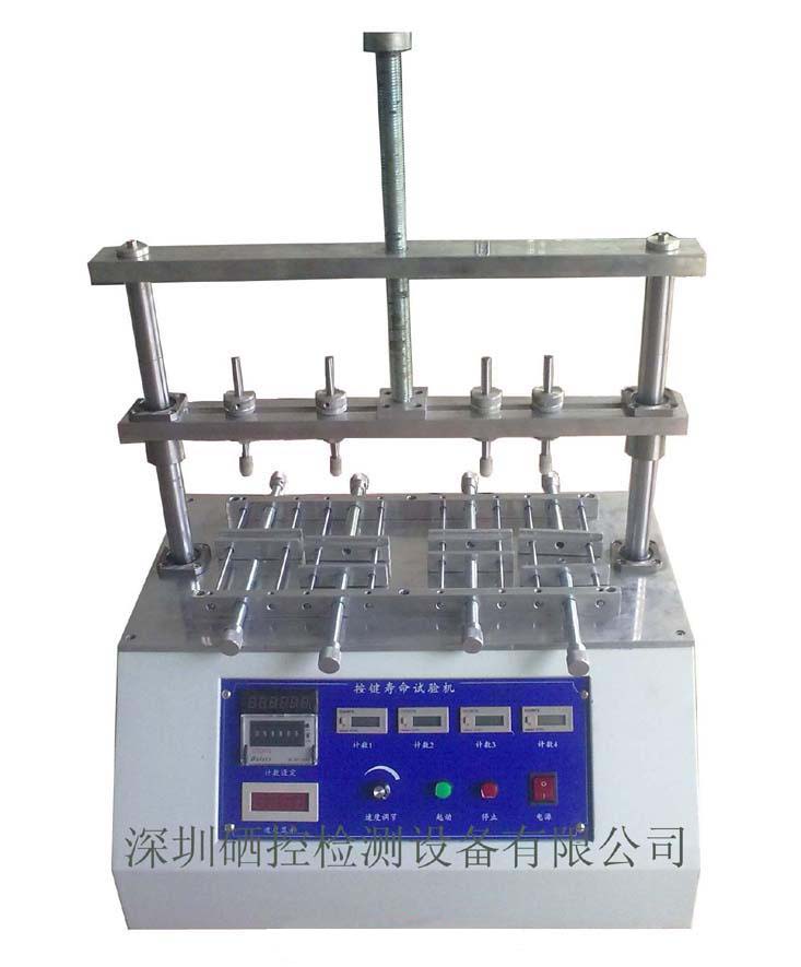 - 開關(guān)按鍵壽命試驗機/開關(guān)按鍵測試儀適用于多種開關(guān)或小型成品,作開關(guān)或按鍵壽命試驗.具有速度可調(diào),次數(shù)設(shè)定,并同時四個工位做測試,達到設(shè)定次數(shù)后數(shù)據(jù)保持。荷重采用加載砝碼方式,保證測量準確度。