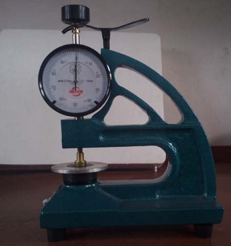 2、用手指按下操縱桿,使測足上臺,將被測片材質放在平臺與測足之間,輕放操縱桿此時表的讀數,即被測物的厚度。每個待測尺寸至少要取5個測量值,計算5點的平均值作為該卷材的厚度并報告最小單位值。