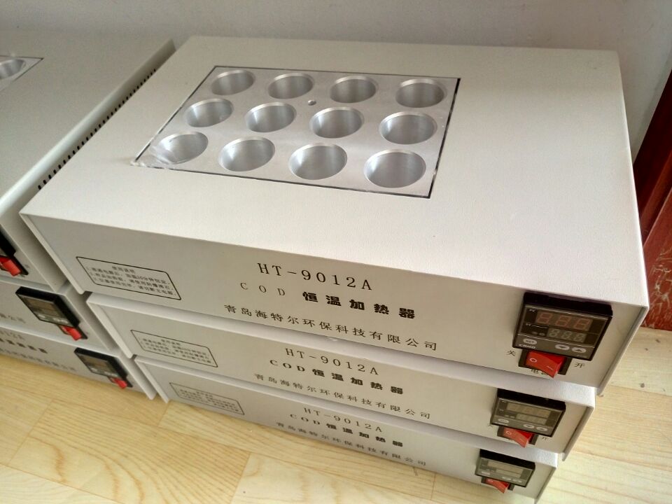 - HT-9012A型COD恒溫加熱器(消解儀)是經典方法分析污水中一種采用空氣冷凝代替水冷凝測定化學耗氧量的加熱回流裝置。它采用新型溫控器,升溫速度快,溫度恒定均勻,操作方便,是一種實驗手段儀器化新產產品。經國家環保局環境監測儀器質量監督檢驗中心測試表明,結果符合國際標準方法ISO06066-86的要求。 采用數字化設定、顯示加熱溫度,自動控制加熱溫度,可設定加熱時間。升溫速度快,溫度恒定均勻,耗電小,操作簡單,性能穩定可靠,廣泛用于環保、醫療、衛生、食品、自來水、造紙、污水處理、印染、石化、冶金、院校等行業的水質檢測。