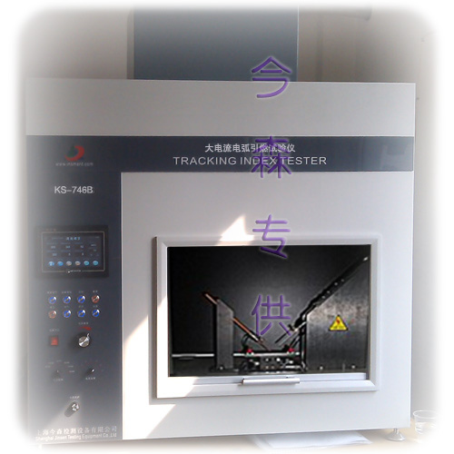大電流起弧試驗儀是采用規定尺寸和不同材質(靜電極-銅和動電極-不銹鋼)的雙電極,在特定電流(33A)和功率因數(COSφ0.5)下,按一定的引弧速度(254mm/s)和重復頻率(40次/min),在試品表面反復引弧至200次,以試品在規定引弧次數下是否引燃來對該試品耐大電流電弧引燃性能進行評定。