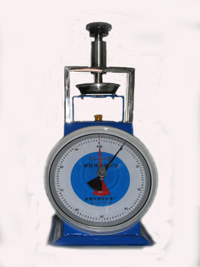 KC-1A型指針顆粒肥料強(qiáng)度專用測(cè)定儀,由彈性元件及傳動(dòng)齒輪等組成,測(cè)定的原理是克定律—在彈性限度,彈性元件的伸長(zhǎng)與受力大小成正比,伸長(zhǎng)量通過(guò)齒條和齒輪的傳動(dòng),轉(zhuǎn)換為在標(biāo)有刻度示值字盤上的指針旋轉(zhuǎn),從而進(jìn)行讀數(shù)。北京巖征顆粒強(qiáng)度測(cè)定儀主要組成:1、加力手輪2、導(dǎo)向機(jī)構(gòu),3、加力頭4、樣品盤5、調(diào)零螺母6、彈簧7、支架8、齒輪傳動(dòng)9、指針10、復(fù)位旋鈕