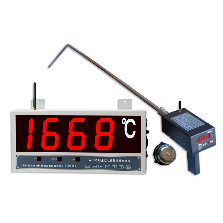將手提式測溫儀測得的溫度值通過無線傳輸技術同步準確傳輸到壁掛式大屏幕顯示器,省卻了壁掛式大屏幕測溫儀連線的麻煩,更提高了儀器的抗千擾能力。儀器與相適應的熱電偶配套可在多種場合進行精密快速測溫