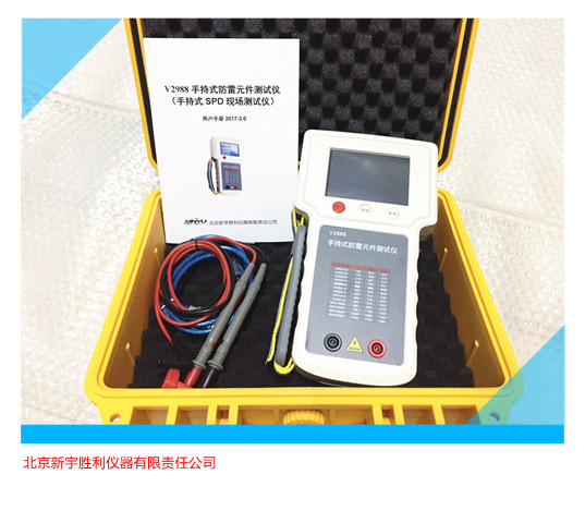 V2955B電涌保護器SPD測試儀;防雷元件測試儀;V2975電涌保護器測試儀;防雷元器件測試儀;V2988手持式電涌保護器SPD安全巡檢儀—測試器件:MOV,具備大容量鋰電池;設計6種測試功能: 壓敏電壓、漏電流、絕緣電阻、放電管點火電壓(直流火花放電電壓)和放電管快速篩選、 導通性能測試,可以滿足對電源避雷器(SPD)安全狀態進行全面的檢測。