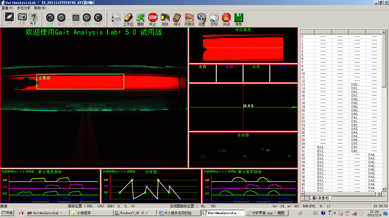 大小鼠步態(gait)是指大小鼠行走時所表現的姿態。BW-GAL1401大小鼠步態實時檢測分析處理系統基于原有足跡分析方法(footprint analysis),運用新技術對足印分析法進行了改進,通過足印圖像增強技術采用高速攝像機可以清晰地采集大小鼠行走過程的足印信息,然后利用步態分析系統自動識別分析大小鼠足跡的步行周期、支撐距離、支撐時長、擺動時長、制動時長、推進時長、步頻等60余種指標,以此客觀、準確和全面地反映動物步態的變化情況。而且BW-GAL1401大小鼠步態實時檢測分析處理系統集數據采集、監測、分析、統計處理、繪圖制表、打印輸出于一體,避免繁重的人工勞動,極大提高實驗的自動化程度。BW-GAL1401大小鼠步態實時檢測分析處理系統可廣泛應用于腦缺血、阿爾茨海默病、帕金森氏病、腦外傷、脊髓損傷、疼痛疾病、關節炎等多種疾病動物模型步態的研究。