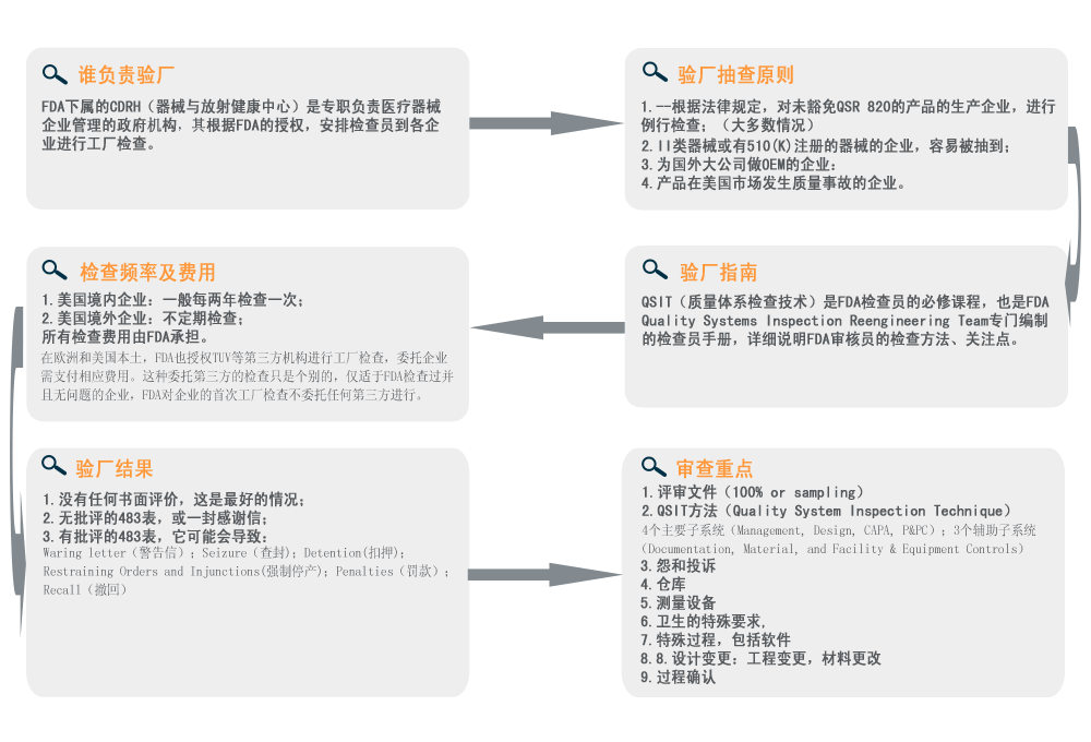 QSR820是美國(人用)醫療器械制造商以及擬將產品銷往美國的外國(人用)醫療器械制造商必須遵守的質量管理體系法規,是多數醫療器械在美國上市之前必須遵守、上市之后隨時可能抽查的基本要求,這種抽查即通常所說的FDA醫療器械QSR820驗廠。