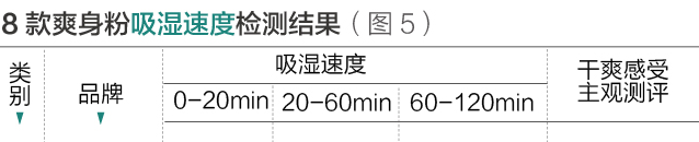 為了模擬消費(fèi)者的日常使用習(xí)慣,本刊此次重點(diǎn)測(cè)試了爽身粉前20分鐘、20分鐘到1小時(shí)以及1小時(shí)到2小時(shí)的吸濕速度。