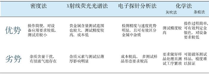 將無損檢測引入判斷貴金屬物品所用材料的判斷,具體有化學方法、電子探針分析法、x射線熒光光譜、密度法等,不同貴金屬適用于不同的方法。